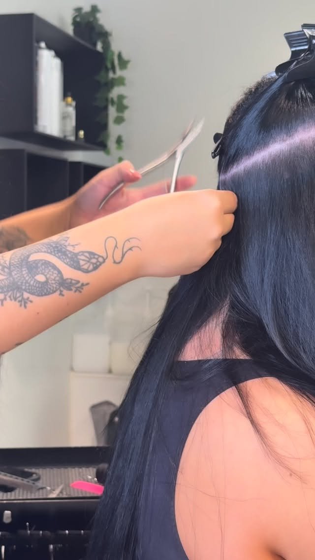 * Hair perfectly matched and blended to create the perfect shade. *Hair Extension Application *Cutting/blending *Styling *Complimentary appointment within 2 weeks (if requested) to trim off more length or to add extra layers/texture